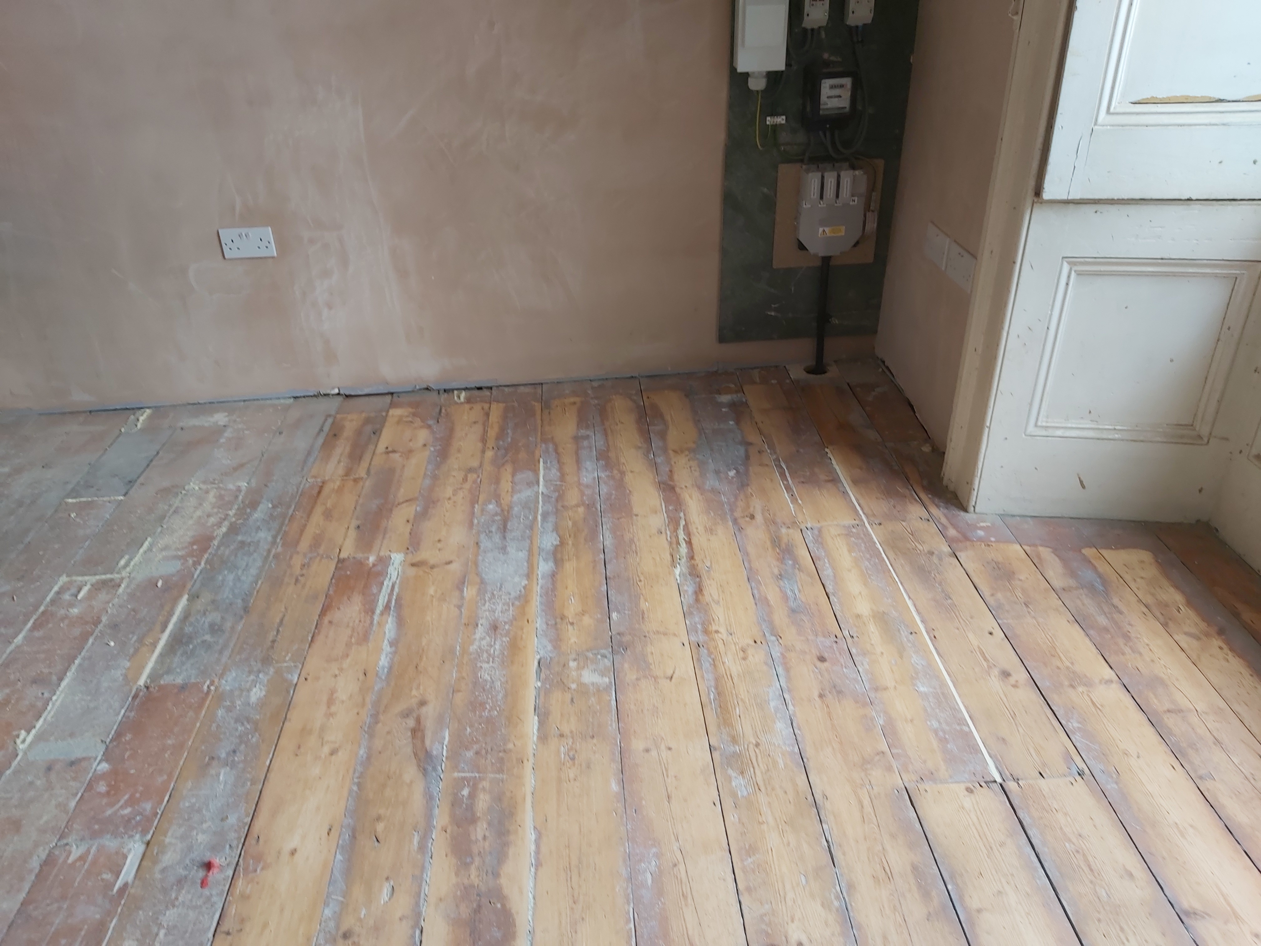 We ask that rooms are cleared of furniture and that any fragile or valuable items are removed from adjacent areas. We install dust barriers at doorways and protect staircases and adjoining rooms as standard. For fitting jobs the property should be fully plastered and dried out, with heating running for at least two weeks before the floor goes in.